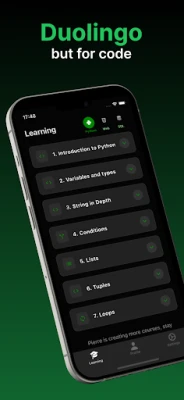 - Learn by doing — like Duolingo, but for code - No subscriptions, no hidden fees - Progress at your own pace - Designed for complete beginners