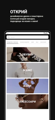 Нашето приложение ти предоставя достъп до внимателно подбрани дрехи, обувки и аксесоари за мъже и жени – колекции, вдъхновени от най-високите стандарти в модата.