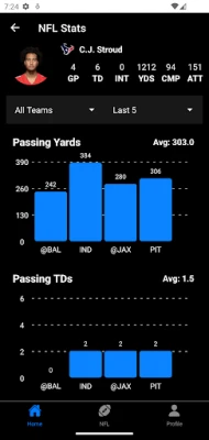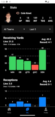 See the game logs and trends of teams right in the app!