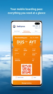 Easy check-in Check in online and find your mobile boarding pass at any time at the homescreen of your SunExpress app.