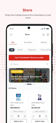Designed with business owners in mind, this easy-to-use app allows distributors to order favourite products in bulk including; Semolina, Bread, Biscuit etc. Distributors can also manage payments invoices, and raise any issues experienced